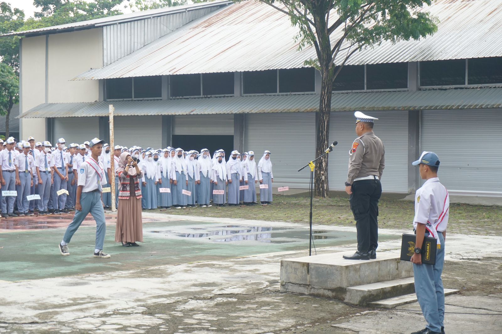 REAKSIMEDIA.COM | Cilacap – Guna menanamkan kedisiplinan pada para pelajar sekolah, Anggota Polantas Polresta Cilacap menjadi pembina upacara di 3 sekolah SMP yaitu SMP ADVENT Cilacap, SMPN 03 Cilacap, SMPN 06 Cilacap dan 1 SMK Boedi Oetomo Cilacap. Senin (30/01/2023).